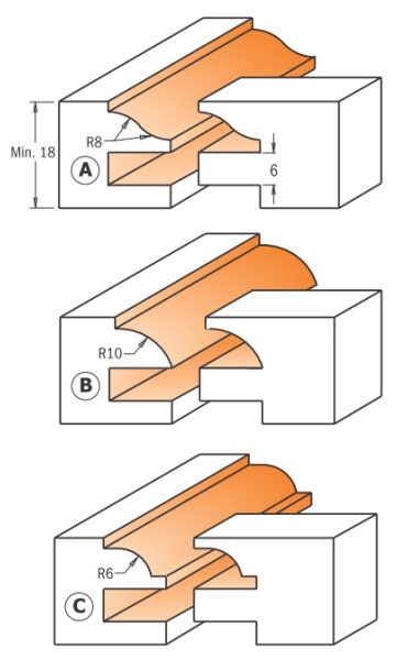 Этот комплект позволит создавать гладкие, аккуратные соединения из твёрдой или мягкой древесины, быстро и качественно. Комплекты рассчитаны на заготовки из мягкой и твердой древесины толщиной от 18 до 22 мм.